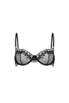 The Charming bra is a refined and sensual piece of lingerie designed for women who value both elegance and confidence. Crafted from sheer black tulle and adorned with floral embroidery, it offers a visually striking design that highlights attention to detail. The bra features shaping underwires and vertical seams on the cups, which gently lift and round the bust for a flattering silhouette. The transparent cups reveal the lower part of the bust, creating a subtle yet seductive effect.